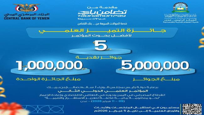 عدن (صوت الشعب) خاص: أعلنت جامعة العلوم والتكنولوجيا – المركز الرئيس عدن عن رفع قيمة جائزة التميز العلمي لأفضل بحوث المؤتمر العلمي الدولي الثاني إلى خ...