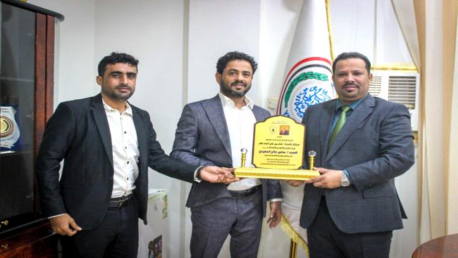 وسلم عامر ، العميد السعيدي ، درعاً تذكارياً في مكتبه بالمؤسسة ، معبراً عن شكر وتقدير أسرة الجلاء لمدير عام المؤسسة الاقتصادية وما يقدمه في سبيل نجاح ناد عريق وكبير في العاصمة عدن.