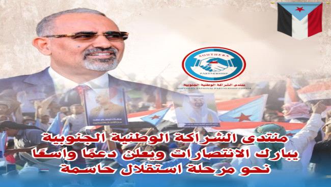 وأكد القائم بأعمال رئيس منتدى الشراكة الوطنية الجنوبية أن الجنوب يقف اليوم أمام مرحلة تاريخية فارقة تتطلب أعلى درجات الوعي الوطني وتعزيز الاصطفاف خلف القيادة السياسية والعسكرية، داعيًا جماهير الشعب الجنوبي في مختلف المحافظات إلى المشاركة الفاعلة في التحركات الشعبية والاعتصامات الجارية التي تشهدها عدن وبقية مدن الجنوب دعماً لمشروع الاستقلال.